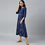 W Indigo Printed A Line Kurta, 1 pc (Size - M)
