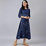 W Indigo Printed A Line Kurta, 1 pc (Size - M/L)