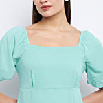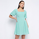 No Question askedMadame Sea Green Checks A Line Dress
