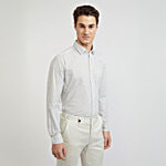 Be a picture of confidence and sharpness in your business affairs with this awesome green & white shirt from the latest collection of Raymond. Beautifully tailored in premium cotton for a nice sheen, excellent softness and unmatched comfort, it's well-designed slim fit cut and elegant print pattern make it a perfect choice for important meetings. Pair it with contrast flat fronts for a neat look.