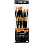 Brustro Gold Taklon Artist's Brushes For Acrylic, Oil & Watercolour, 8 pcs (Round 1,3,5, Bright 2,6, Filbert 2,6, Flat 2)