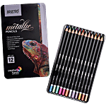 The Brustro Artist Metallic Colour Pencil Set has been thoughtfully designed to transform your art into dazzling masterpieces. This set of 12 high-quality metallic pencils offers a rich, lustrous palette that performs beautifully on both light and dark surfaces. The smooth, soft core ensures flawless shading, blending, and layering, making these pencils ideal for adding unique highlights and details to your creations. Included in this premium set is a versatile A5 Black & White Drawing Paper Pad with 24 sheets of thick, 200 gsm paper. This acid-free paper provides an ideal surface to bring out the shimmer and depth of the metallic pigments, allowing you to experiment on both black and white sheets for contrasting effects. Whether you're creating eye-catching lettering, intricate illustrations, or enhancing mixed media projects, the weight and quality of the paper ensure a smooth application without warping or smudging. The compact, travel-friendly format of this set lets you take your creativity anywhere, making it a perfect companion for hobbyists, students, and professional artists alike. Elevate your art and see your work in a new light with the vivid metallic colours and premium drawing paper that Brustro provides. Ideal for artists looking to experiment and those aiming for precision in their work, this set is a versatile addition to any creative toolkit.