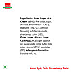 The Amul EPIC Strawberry Twist Gold Ice Cream Stick (80 ml) featuring a creamy strawberry-flavoured ice cream centre, enveloped in a rich Belgian chocolate coating. This indulgent treat is crafted with milk solids, sugar, cocoa solids, cocoa butter, and permitted emulsifiers and stabilisers.