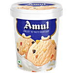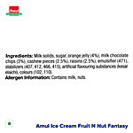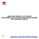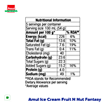 Amul Fruit N Nut Fantasy Ice Cream is a delightful mix of creamy vanilla ice cream blended with bits of orange jelly, chocolate chips, cashew pieces, and raisins. Packed in a convenient 500 ml tub, it offers a rich and textured treat with every scoop. Perfect for enjoying on its own or sharing with family and friends.