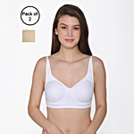 Clovia Cotton Non-Padded Non-Wired Full Coverage T-Shirt Bra - White & Beige, 2 pcs (Size - 32C)