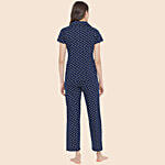 Clovia Button Down Anchor Print Cotton Shirt & Pyjama - Navy, 1 Set (Size - M)