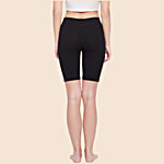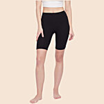 Black cycling shorts crafted with cotton-spandex fabric, offering a good stretch and comfortable fit. It features long legs to provide chaffing. Designed with mid rise and an inner elastic waistband to avoid rashes. Perfect to be worn under short dresses or skirts to protect modesty.