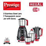 Experience efficient and effortless blending with the Prestige Regal 750W Mixer Grinder. Featuring a powerful 750-watt motor, it comes with three durable stainless steel jars and one transparent juicer jar, perfect for all your grinding and juicing needs. Its large capacity jars and sleek design ensure quick, convenient operation with a modern touch. Whether it’s spices, batters, or fresh juices, enjoy faster results in your kitchen every day.