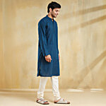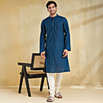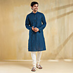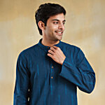 No Question askedFabindia Navy Cotton Dobby Slim Fit Long Kurta