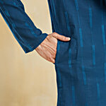 Fabindia Navy Cotton Dobby Slim Fit Long Kurta, 1 pc (Size - XL)