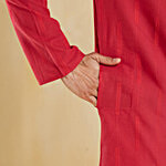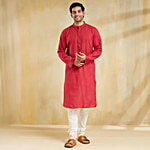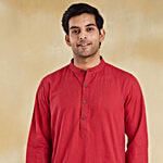 No Question askedFabindia Red Cotton Dobby Slim Fit Long Kurta