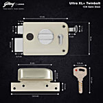 Godrej Locks Ultra XL+ Twinbolt 1CK Rim Lock With 4 Keys - Satin Nickel Finish, 1 pc