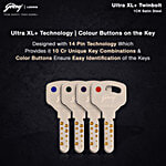 No Question askedGodrej Locks Ultra XL+ Twinbolt 1CK Rim Lock With 4 Keys - Satin Nickel Finish