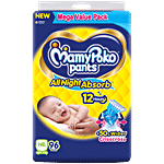 MamyPoko Pants All Night Absorb feature advanced +50% Widespread Crisscross absorption, ensuring effective and continuous absorption for up to 12 hours, effectively preventing leakage even under heavy conditions. Specifically designed for newborns up to 5 kg, these diapers provide reliable protection throughout the night, offering parents peace of mind and babies uninterrupted comfort.
