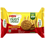 Britannia NutriChoice Digestive Biscuits are fibre-rich biscuits packed with the richness of wheat flour (atta) and bran. With every bite, you experience the coarseness of this fibre-rich biscuit. These Digestive cookies are baked to precision, making them a great snack option. Go ahead and make the NutriChoice.