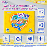 TokiBaby Light Ultra-Thin Pull Up Baby Diaper Pants (Size M, 44 Count) are specially designed for babies aged 5 to 12 months, weighing 7-12 kg. These diapers feature a super soft 360° waistband that ensures a snug yet gentle fit, allowing your baby to move freely and comfortably. The ultra-thin design offers breathable comfort, while the advanced 3D leak guard technology helps prevent leaks from all sides. With up to 12 hours of overnight absorption, TokiBaby diapers keep your little one dry and protected through the night. Easy to pull up and down, they make diaper changes hassle-free for active babies.