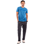Hoversoul Men's 100% Cotton Front Emb Crew Neck T-Shirt - Light Blue