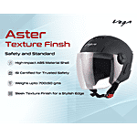 The Vega Aster Helmet in Anthracite combines safety and style for riders. Crafted from durable Acrylonitrile Butadiene Styrene (ABS), this round-shaped, open-face helmet ensures reliable protection. Its sleek, plain design and anthracite colour offer a modern, understated look. Measuring 18 x 7 x 10 cm, the lightweight AST-K-M model is designed for comfort and ease. Equipped with a clear visor, it provides excellent visibility. The helmet features a removable, washable lining and a secure buckle for convenience. ISI-certified, this Vega Auto face helmet is perfect for two-wheeler enthusiasts seeking quality and functionality in a compact package.