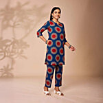 Daali Blue Cotton Regular Fit Printed Kurta, 1 Set (Size - XXL)