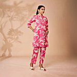 Daali Pink Cotton Regular Fit Floral Print Kurta, 1 Set (Size - L)