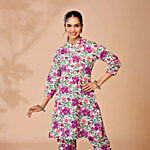 Daali Purple & White Cotton Regular Fit Floral Print Kurta, 1 Set (Size - S)