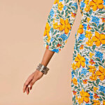 No Question askedDaali Yellow & Blue Cotton Regular Fit Floral Print Kurta