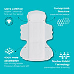 The wider back offers additional coverage, giving you greater confidence during heavier flow days. These pads also use biodegradable potassium polyacrylate as a super-absorbent material, capable of absorbing up to 400% of its weight, while remaining environmentally friendly.