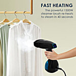 Agaro Signify Handheld Garment Steamer - 1500W, With Lint Brush, Black & Blue, 260 ml