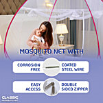 Classic Mosquito Net King Size Double Bed Foldable Machardani - Polyester 30 GSM Strong Net, PVC Coated Steel Wire, Pink, 1 pc