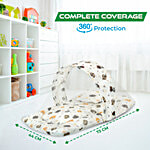 Evafly Baby Mosquito Net With Cotton Bed - Cream, Zip Closure, Neck Pillow, Bear Print, 0-6 Months