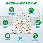 Evafly Baby Mosquito Net With Cotton Bed - Cream, Zip Closure, Neck Pillow, Bear Print, 0-6 Months, 1 pc
