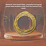 Tulsi Kanthi Mala, a beautiful and sacred prayer bead necklace made from the revered Tulsi wood. Each bead is carefully crafted from the natural Tulsi wood, offering a soothing aroma and a calming energy that promotes inner peace and tranquility. It is believed that goddess Lakshmi resides in Tulsi and thus brings you blessings of her and Bhagwan Vishnu. Wearing it will support your journey to inner peace and well-being.