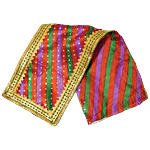 A Mata ki Chunri (Small) is a sacred cloth traditionally used in Hindu rituals to honour and adorn deities, particularly during festivals such as Navratri, Durga Puja, and Diwali. Usually made from net or cotton fabric, these chunris are often decorated with golden lace or intricate embroidery, symbolising purity and devotion. They are typically draped over idols, placed on altars, or used during Kanya Pujan ceremonies.