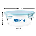 bb home Seal & Lock Borosilicate Glass Lunch Box - Round, Green, 400 ml