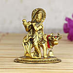 No Question askedeCraftIndia Golden Metal Lord Krishna Idol Playing Flute With Cow – Decorative Showpiece