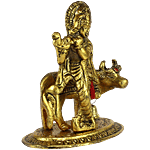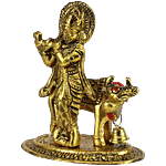 No Question askedeCraftIndia Golden Metal Lord Krishna Idol Playing Flute With Cow – Decorative Showpiece