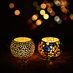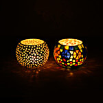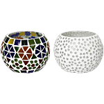 eCraftIndia Beautifully Crafted Multicoloured Mosaic Glass Decorative Tea Light Candle Holders, 2 pcs