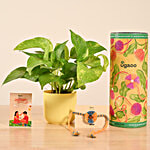 Ugaoo Gift Hamper Set - Live Money Plant + Seed Rakhi + Greeting Card