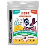 Insta Labels Writeable Waterproof Iron-On Label Stickers For Kids With Marker Pen, 60 pcs