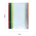 Multi-color slide bar for vibrant document organization, Durable 120-micron polypropylene for long-lasting use Strong 7mm x 11mm slide bar secures papers without holes, Transparent design for clear document visibility Fits A4-sized documents perfect for reports and projects & Holds up to 30 sheets depending on paper thickness.