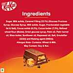 Sugar, Milk solids, Caramel Filling (12.1%) (Glucose Fructose Syrup, Glucose Syrup, Milk solids, Sugar, Fractionated vegetable fat & Salt), Cocoa solids (8.2%), Cocoa butter (7.3%), Refined wheat flour (Maida), Dried glucose syrup, Palm oil, Palm kernel oil, Shea butter, Sunflower oil, Rapeseed oil, Salt, Emulsifier (322(i)) and Raising agent (500(ii)). Allergen Note- Contains: Wheat & Milk. May Contain: Soy & Nut.