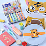 FNP Jungle Joy Kids Rakhi Hamper Set With Doms Crayons 12 pcs, Lego Pen, Dino Highlighter Stamp, Greeting Card & Roli Chawal, 1 pc