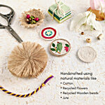 Drawing from the serenity of blue blossoms, this Rakhi is handwoven in calming shades of indigo and sky. A symbol of peace and promise, the Neel Phool Rakhi brings a fresh, floral charm to Raksha Bandhan.