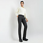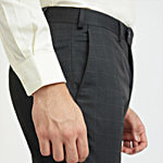 Be admired for your distinct sense of fashion by wearing this pair of grey contemporary fit trousers from Raymond. Tailored to sartorial perfection from premium quality fabric, it assures a soft and soothing touch against the skin. The checked pattern lends it a finial touch.