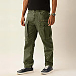 Bene Kleed Olive Loose Fit Overdyed Cotton Cargos, 1 pc (Size - 30)