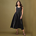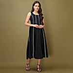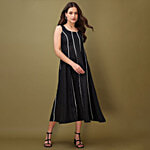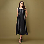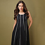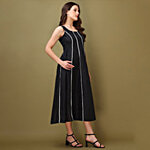 Purvaja Women's Black Cotton Blend Lace Dress, 1 pc (Size - XL)