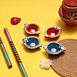 Mangal Bhavan Ganesha Traditional Diya Set - Multicolour, 4 pcs