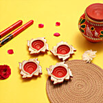 Mangal Bhavan Swastik Traditional Diya Set, 4 pcs