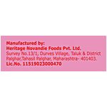 Manufactured by: Heritage Novandie Foods Pvt. Ltd. Survey No.13/1, Durves Village, Taluk & District Palghar, Tahasil Palghar, Maharashtra- 401403.