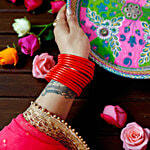 House of Festivals Glass Bangles - Red, Size 2.4, 12 pcs